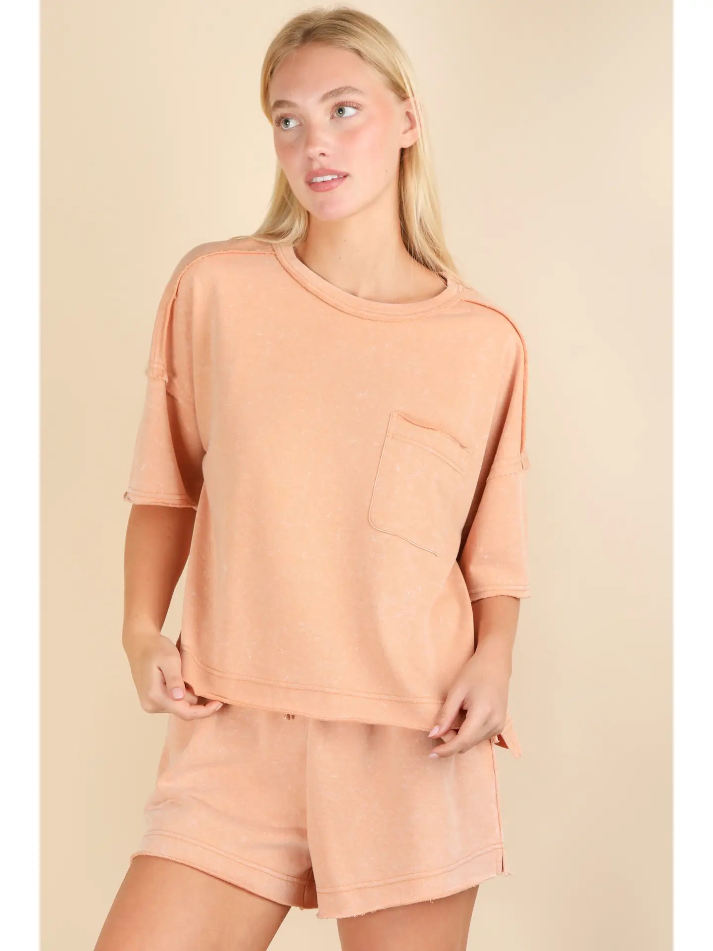 - Mineral Washed Comfy Knit Top & Shorts Set