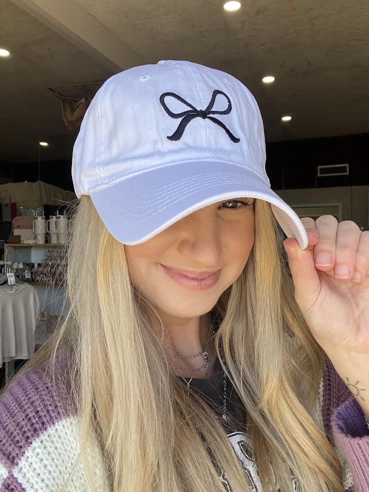 Bow Ribbon Baseball Hat - White