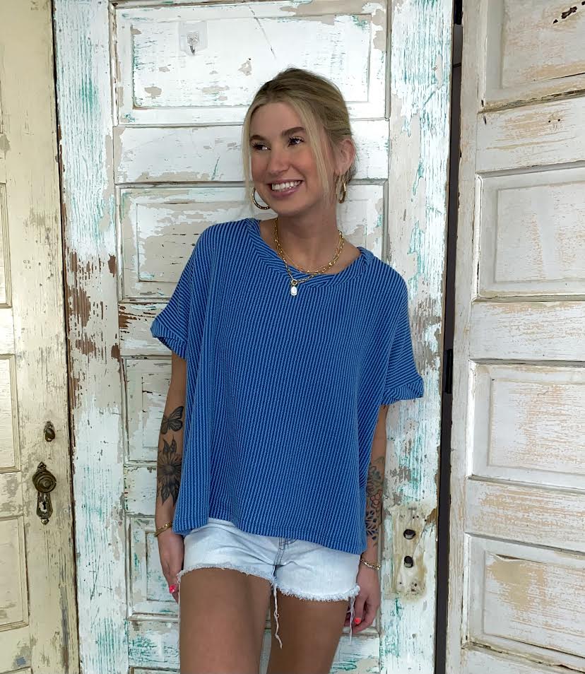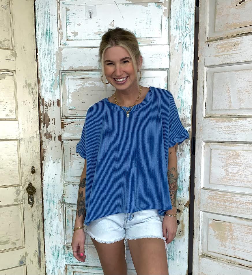 TEXTURED LINE SHORT TWISTED SLEEVE TOP