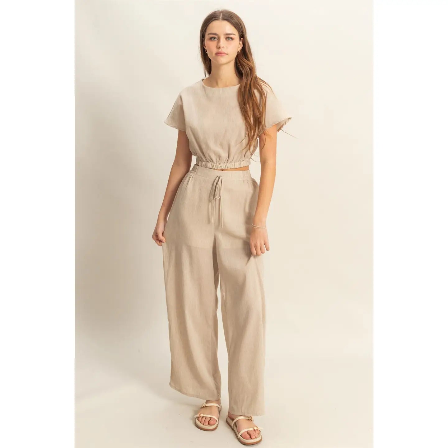 The Best Things Come In Pairs, Such As This Exquisite Top And Bottom. The Top Features A Boat Neckline With A Relaxed Silhouette That Cinches In Along The Waist. The Pants Offer A High-Rise Fit With Drawstring Detailing And Flowy Pant Legs.
