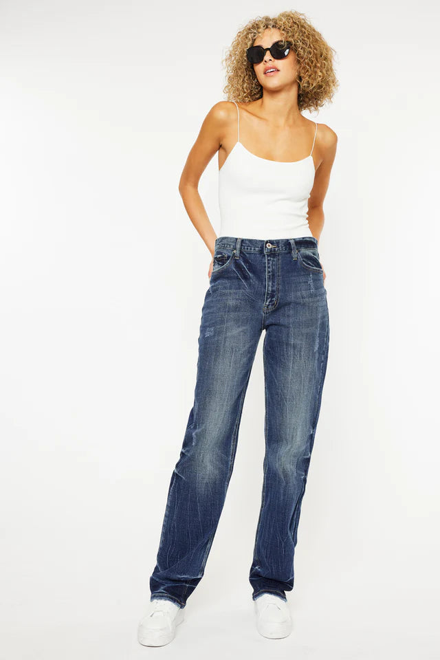 Our Mordekaiser High Rise Dad Jeans come in a relaxed straight-leg style. With a slightly dropped crotch design, it gives a comfortable and stylish look. Made with stretch denim that moves with your body as it maintains its shape even after multiple wears. Features a classic five-pocket design, single-button front, and zip-fly closure.